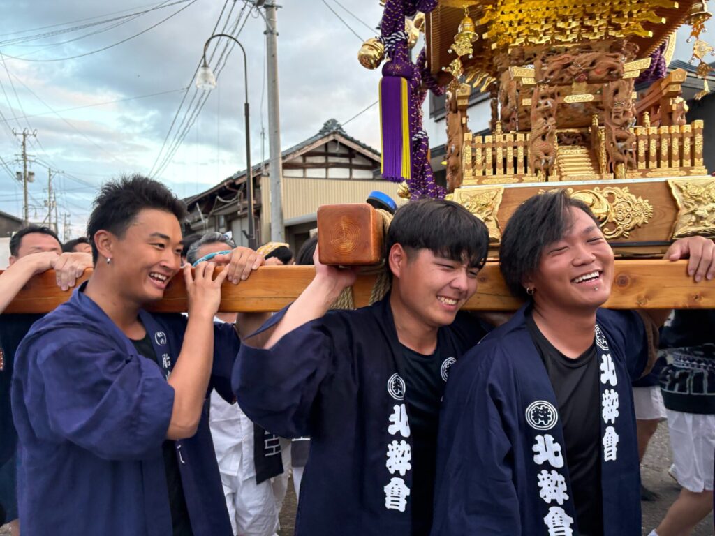 中条まつりの御神輿を、今年も弊社の若手社員と担いできました😀